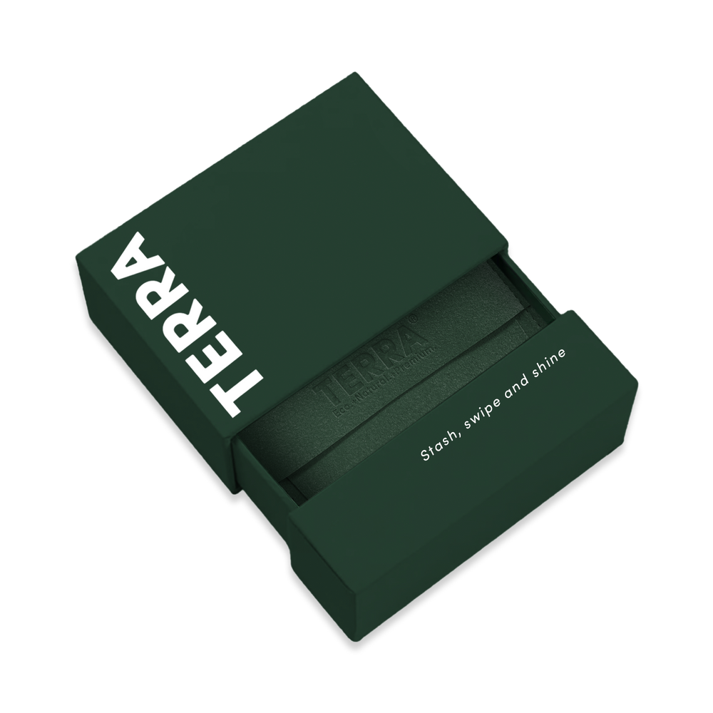 Unlike regular pouches, the TERRA Essence Pouch blends premium design with sustainable values. Its soft, luxurious microfibre, minimalist aesthetic, and refined packaging make it a statement accessory that stands for both elegance and environmental mindfulness.