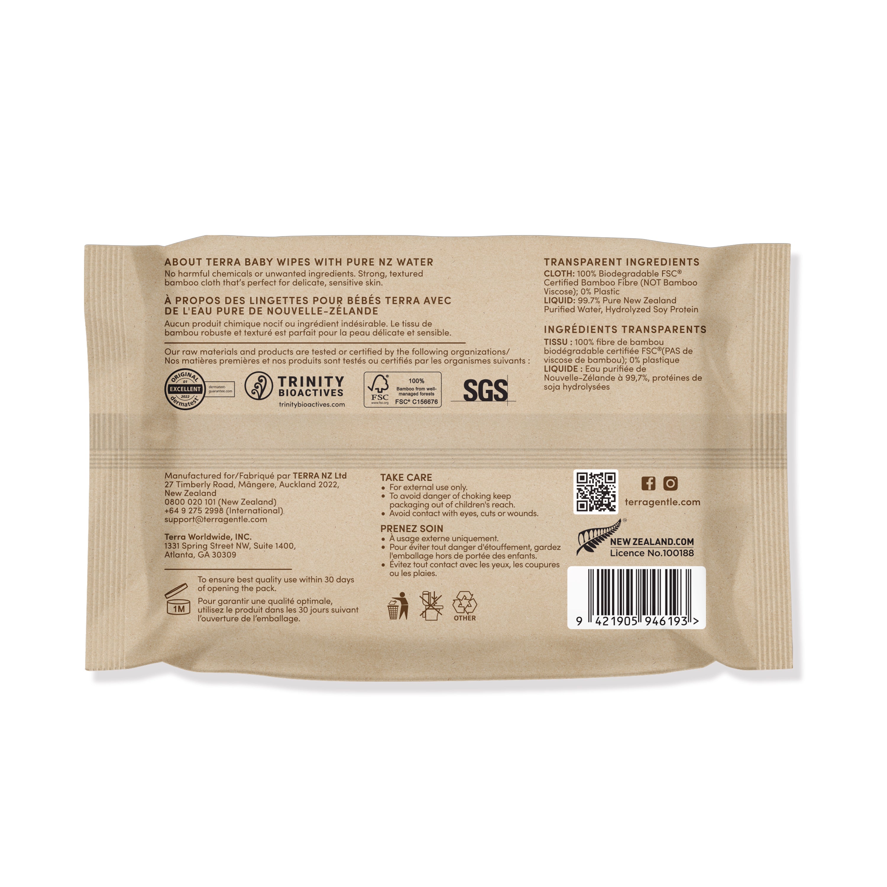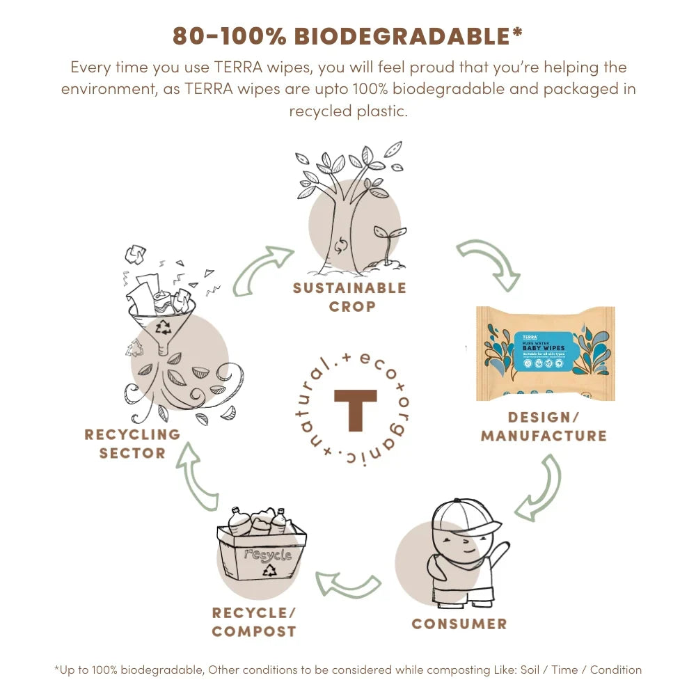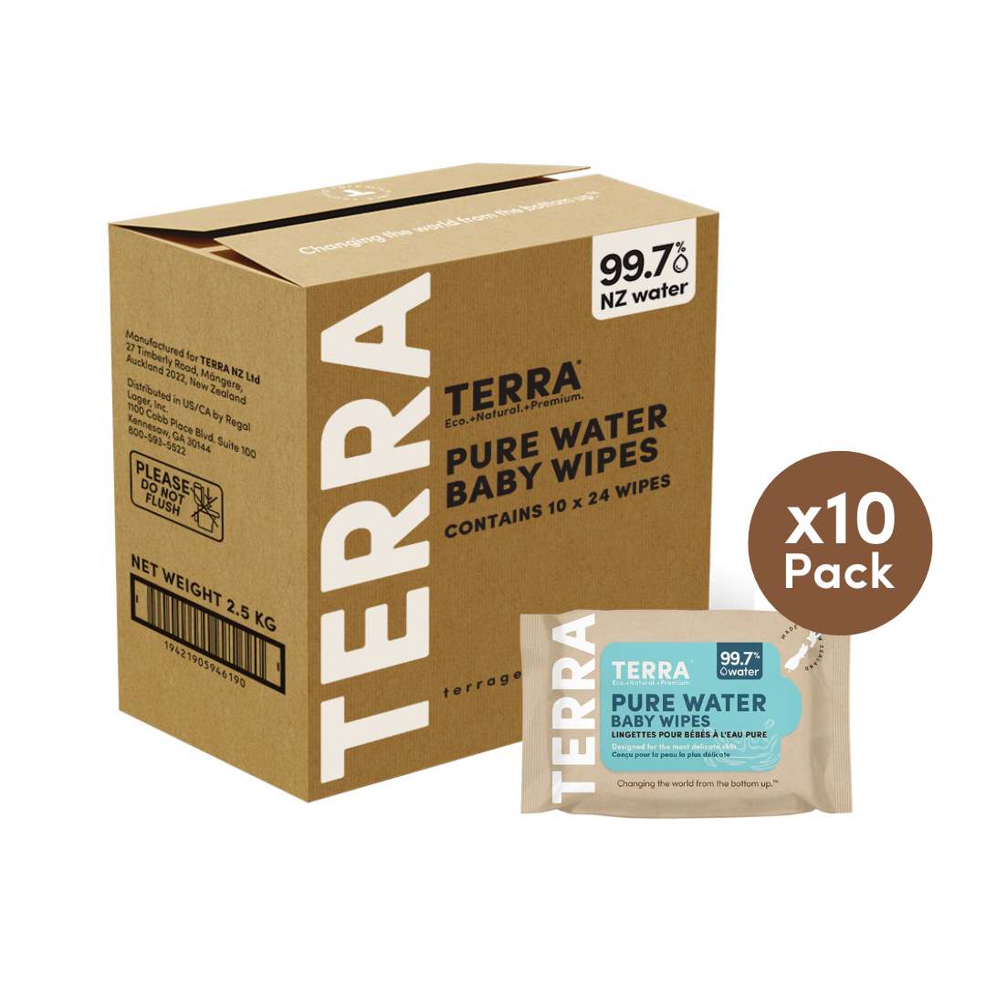 TERRA Baby Wipes are carefully crafted with pure New Zealand water and ultra-soft, FSC-certified biodegradable bamboo fiber to provide a gentle, soothing clean. Completely free from chemicals, alcohol, and harsh ingredients, TERRA wipes offer a soft touch for even the most sensitive skin. With TERRA, everyday care is made pure, effortless, and trusted.