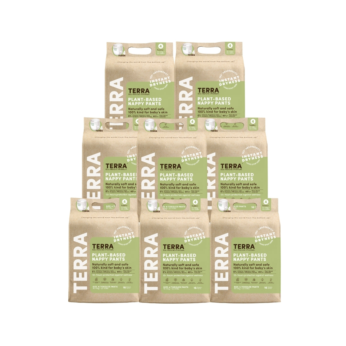 Terra offers nappy pants in a range of sizes designed to support toddlers through to junior stages.